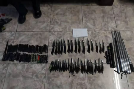 為凈化校園周邊環境,創造良好的社會秩序,近日,肇東市公安局紅旗派出所積極開展校園周邊治安秩序整治工作,對轄區內校園周邊場所進行大檢查。檢查過程中,在第五中學附近一食雜店,現場制止李某購買管制刀具,并查獲店內的管制刀具76把(卡簧刀37把、尖刀39把)、電擊棍3根、甩棍11根。
