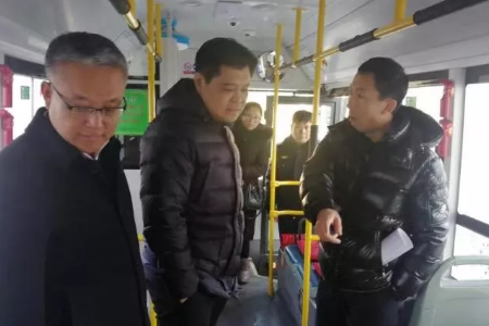 在市公汽公司公交總站對運營情況進行實地檢查時,徐曉平登上新能源公交車,向公汽公司相關人員了解新能源電動公交車的安全性能及耗電情況。檢查中他強調,公汽公司要繼續加快車輛轉型升級步伐,切實做好“元旦”“春節”期間的公交安全運營工作,給廣大市民提供一個安全舒適的出行環境。