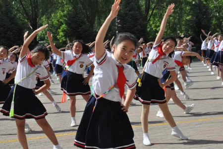 “古詩(shī)韻律操”是采用學(xué)生一邊吟誦經(jīng)典古詩(shī)詞,一邊做韻律操的形式,通過(guò)選取學(xué)生必背古詩(shī)詞22首加上動(dòng)作形成古詩(shī)韻律操,并不定期更換內(nèi)容,將古詩(shī)詞誦讀和韻律操相結(jié)合編排,演繹經(jīng)典古詩(shī)詞的韻律,做到“以操促德、以操輔知、以操健體、以操審美”。隨著優(yōu)美的經(jīng)典樂(lè)曲,和著耳熟能詳?shù)墓旁?shī),孩子們嫻熟地做著韻律體操,動(dòng)作如舞蹈一般,時(shí)而輕盈、時(shí)而剛勁、時(shí)而堅(jiān)定、時(shí)而歡快,一招一式都將音樂(lè)、詩(shī)韻融入其中,完美展示出古詩(shī)韻律操的獨(dú)特魅力,切實(shí)達(dá)到了提高學(xué)生綜合素質(zhì)的目的。