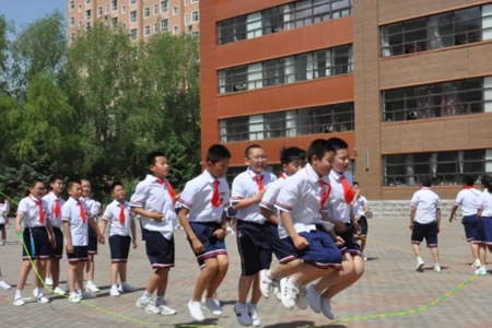 “跳繩”是該校體育工作的一大特色,做到了人人有跳繩,個(gè)個(gè)有花樣、班班有特色。由于此項(xiàng)運(yùn)動(dòng)不受年齡限制,是一項(xiàng)強(qiáng)健心臟、有益增高的運(yùn)動(dòng),又能鍛煉學(xué)生的彈跳力、節(jié)奏感和協(xié)調(diào)性,非常受學(xué)生們歡迎。有長(zhǎng)繩和短繩,有速度跳和花樣跳,有單人跳和多人跳,多人集體跳繩等形式,既讓孩子們?cè)谔K中,展示自我、愉悅身心、享受童年的朝氣蓬勃,更進(jìn)一步增強(qiáng)了學(xué)生集體榮譽(yù)感及培養(yǎng)出合作精神。