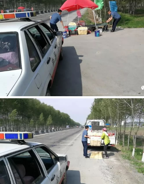 通過執(zhí)法人員耐心細致的文明執(zhí)法,攤販們自覺把貨物搬離公路用地范圍,有效保障了公路安全暢通。