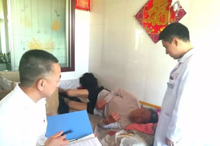 6月19日,市殘聯工作人員和市人民醫院醫生來到我市安民鄉榆樹村貧困殘疾人祝永信家中,在床頭為祝永信進行殘疾鑒定。