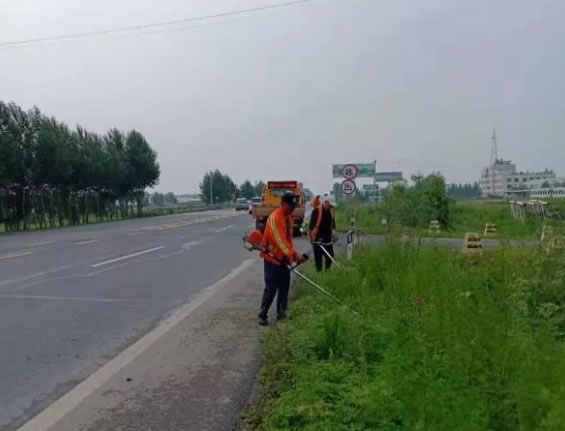 養(yǎng)護(hù)人員按照路肩養(yǎng)護(hù)技術(shù)標(biāo)準(zhǔn),采取人工、打草機(jī)配合的方式,對(duì)路肩及淺邊坡采用機(jī)械修剪,而對(duì)深邊坡及外邊坡的高草進(jìn)行人工割除,做到不留死角,確保達(dá)到路肩整齊、平順,邊坡排水溝通暢,警示樁、防撞墩、公里碑等標(biāo)志醒目。