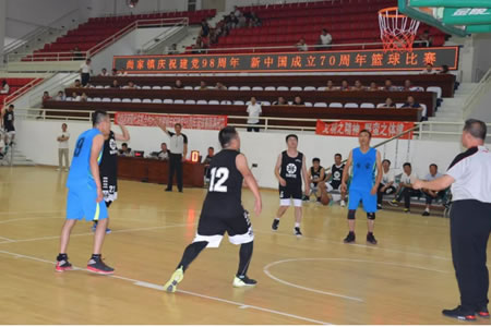 7月19日,尚家鎮在市體育館舉辦慶祝建黨98周年、新中國成立70周年籃球賽。